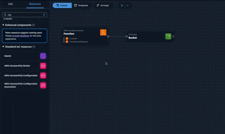 Anunciado como pré-lançamento no AWS re:Invent 2022 e disponível para o público em geral em março de 2023, o Application Composer é um construtor visual que torna mais fácil para os desenvolvedores visualizar, projetar e iterar em uma arquitetura de aplicativo ao arrastar, agrupar e conectar serviços da AWS em uma tela visual. O Application Composer simplifica a criação de aplicativos modernos, fornecendo uma interface visual de arrastar e soltar, fácil de usar e gera modelos de IaC em tempo real.