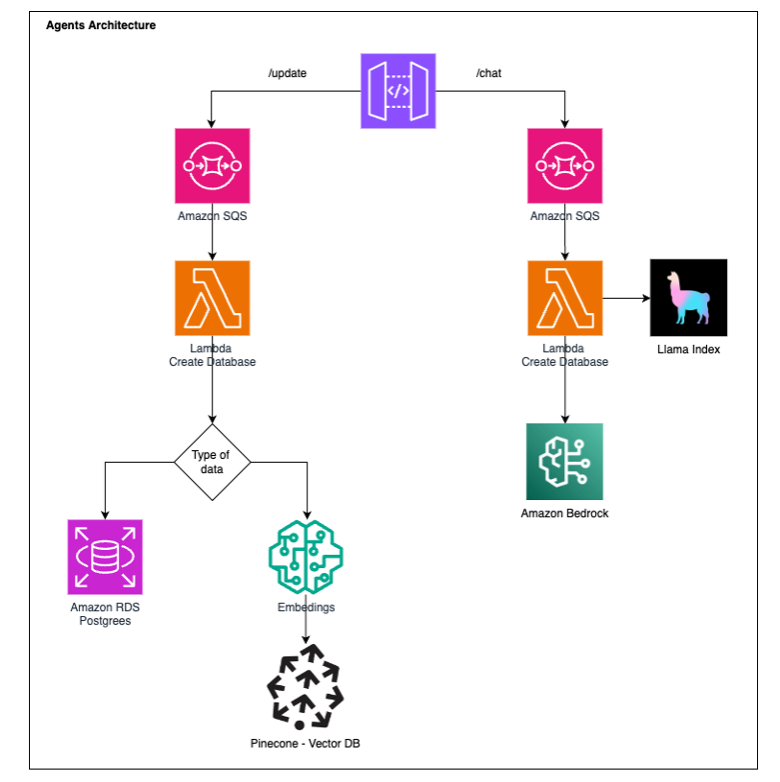 Para garantir que os agentes possam processar requisições de maneira eficiente e em tempo real, foi utilizado um conjunto de serviços da AWS que facilita essa escalabilidade: