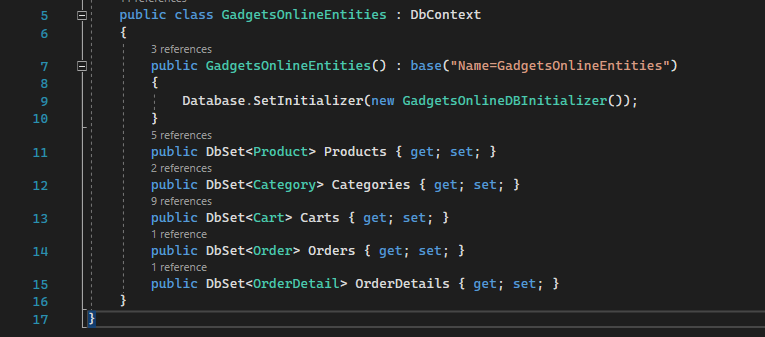 Models\GadgetsOnlineEntities DbContext que chamará a camada de banco de dados: