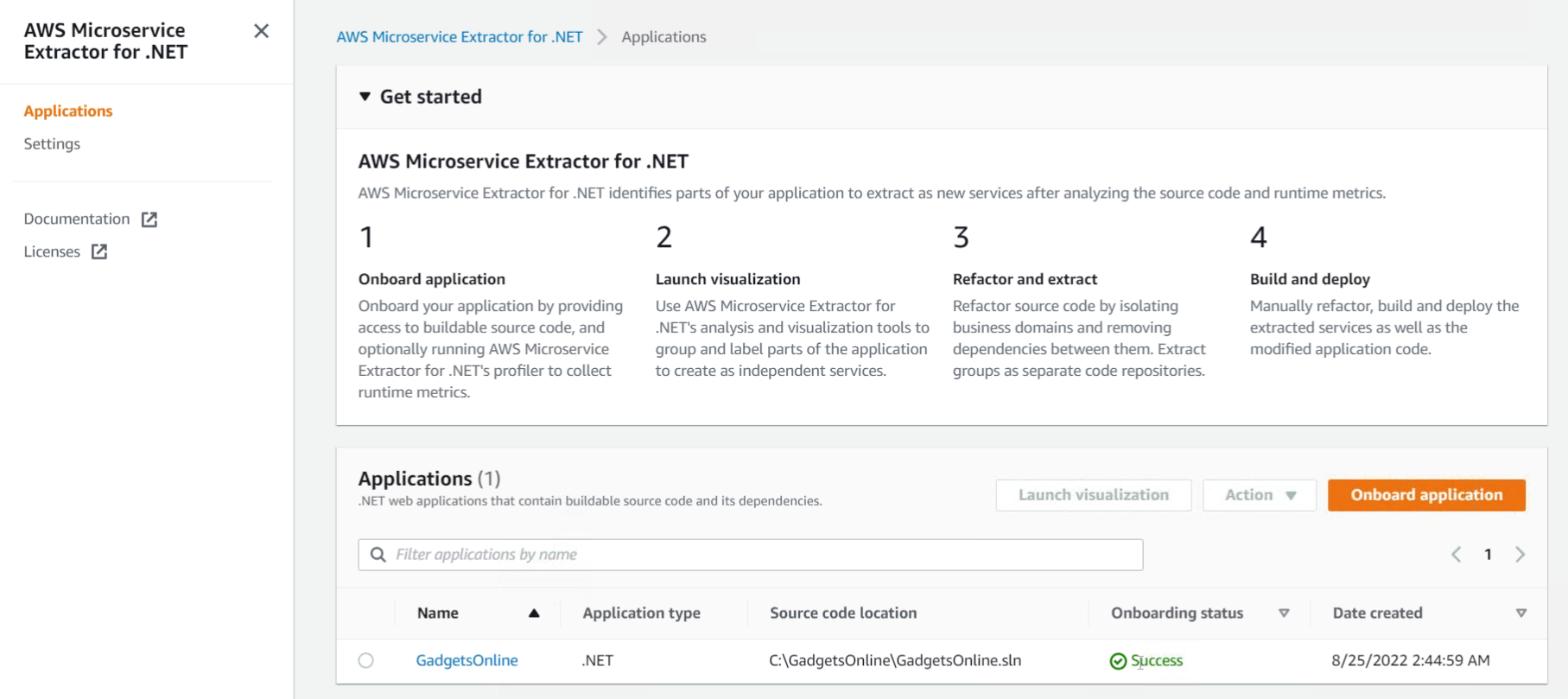 O Microservice Extractor for .NET é uma ferramenta de aplicativo independente do Windows cujo único pré-requisito é ter uma conta da AWS. É uma ferramenta gratuita que pode ser usada quando você quiser. Você pode começar com vídeos e demonstrações da ferramenta, e workshops didáticos para aprender tudo o que precisa sobre a ferramenta. Esta é uma ferramenta completa que pode fazer um bom trabalho refatorando sua aplicação monolítica em microsserviços e tem potencial para ser uma ferramenta ainda melhor para esses casos de uso em um futuro próximo.