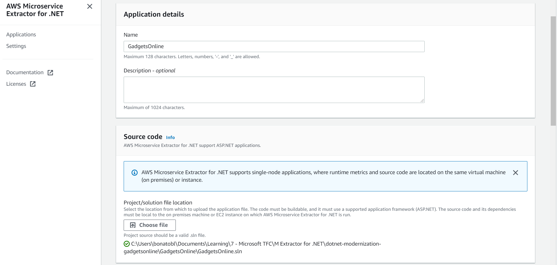 - Analyze .NET Core Portability: A ativação dessa configuração requer que o Porting Assistant for .NET seja instalado na mesma máquina que o AWS Microservice Extractor for .NET. Essa configuração integra a análise de código-fonte com o Porting Assistant para analisar a compatibilidade de código para atualização para .NET / .NET Core.