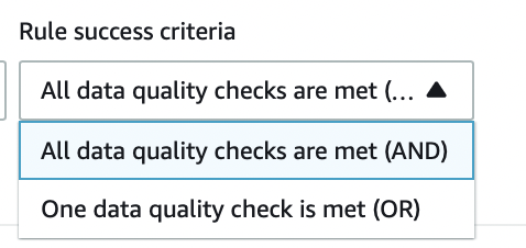 - Se sua regra tiver mais de uma verificação, no menu ““rule success criteria“, escolha se todas as verificações devem ser atendidas ou quais atendem aos critérios