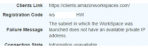 Amazon WorkSpaces – The Subnet in which the WorkSpace was launched does not have an available private IP Address
