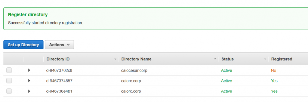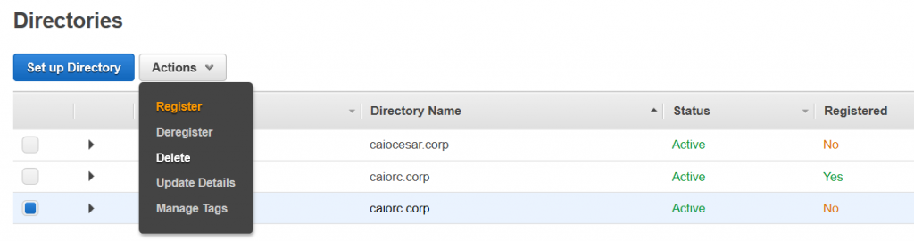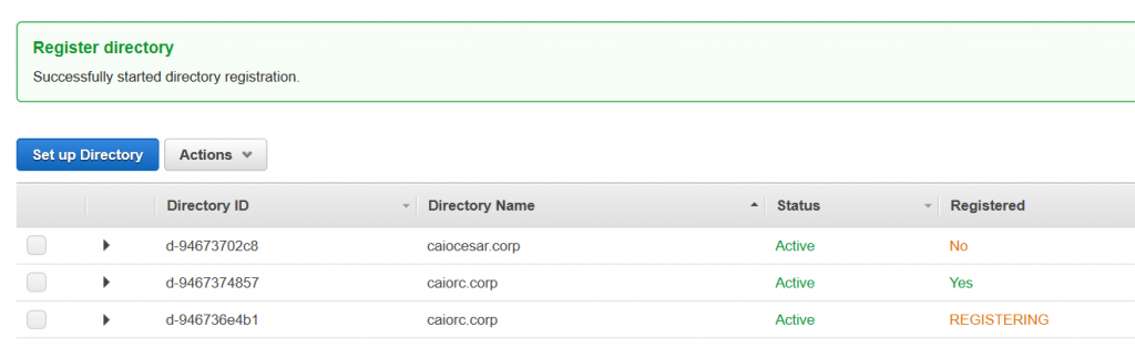 Neste cenário, seguimos os passos recomendados do artigo “Ativar um WorkSpace usando o AD Connector”.