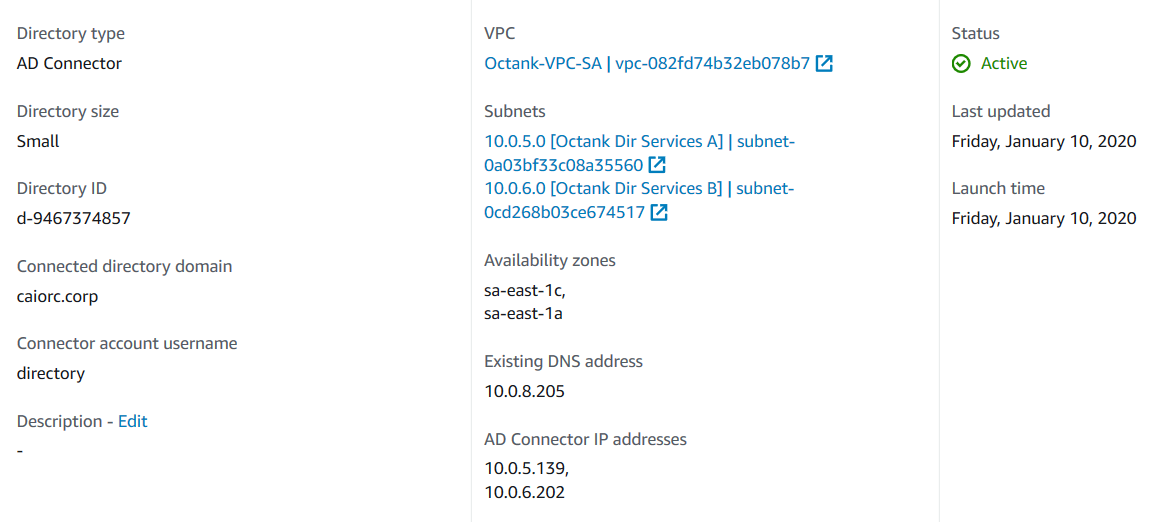 Confirmamos no AD Connector que estas subnets estavam sendo utilizadas: