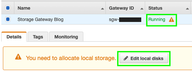 13. Clique em Editar discos locais (para executar esta etapa, você provavelmente terá que esperar alguns minutos para que o Gateway termine de ser totalmente criado).