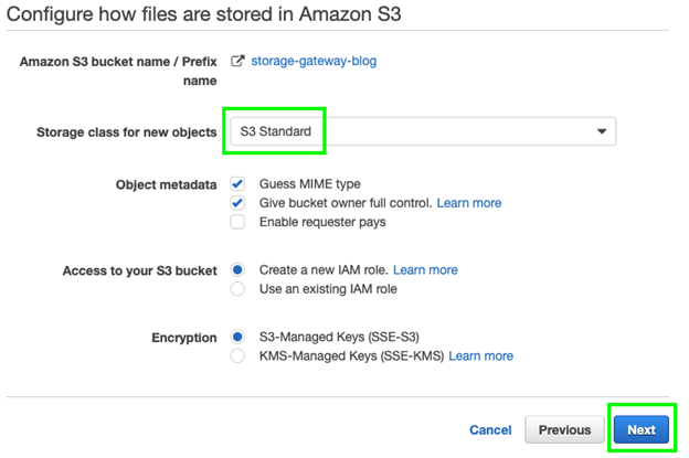 23. Na classe de armazenamento para novos objetos selecione S3 Standard.