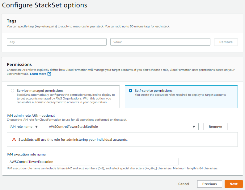 - Nome da função do IAM: Selecione AWSControlTowerStackSetRole