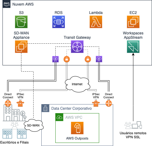 Hoje em dia ninguém duvida dos benefícios da computação em nuvem. No entanto, a jornada das empresas para a nuvem tem seus desafios, especialmente durante a coexistência com recursos locais (ambientes híbridos). Uma delas é adaptar as redes empresariais, tradicionalmente focadas no datacenter, a um esquema onde a maioria das cargas de trabalho está na nuvem. Cada desafio é uma oportunidade para pensar em como adaptar os processos e arquiteturas existentes para aproveitar ao máximo um sistema distribuído, escalável e altamente disponível, como a AWS.
