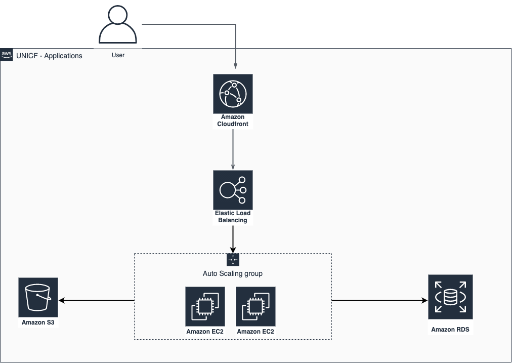As principais aplicações da UNICFC recebem aproximadamente 3 mil sessões simultâneas nos horários de maior pico. Além do alto número de acessos em determinados momentos, as aplicações gerenciam vídeos e imagens de aulas teóricas e práticas dos CFC`s, somando aproximadamente a volumetria de 140TB que são armazenados no serviço Amazon S3, que é um serviço de armazenamento de objetos que oferece escalabilidade, disponibilidade de dados, segurança e performance.