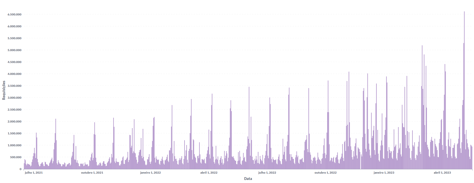 Figura 3 – Quantidade de requisições dos aplicativos ao longo de vários dias