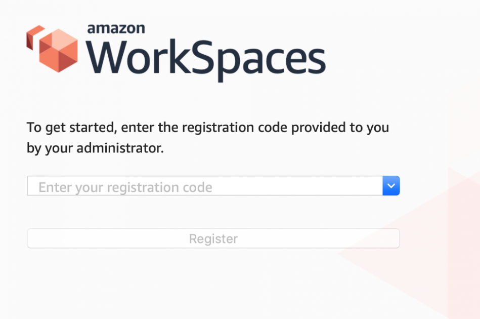 13- Após instalado, abra o cliente do WorkSpaces e informe o Registration Code (que consta nos detalhes da WorkSpace criada) e clique em Register: