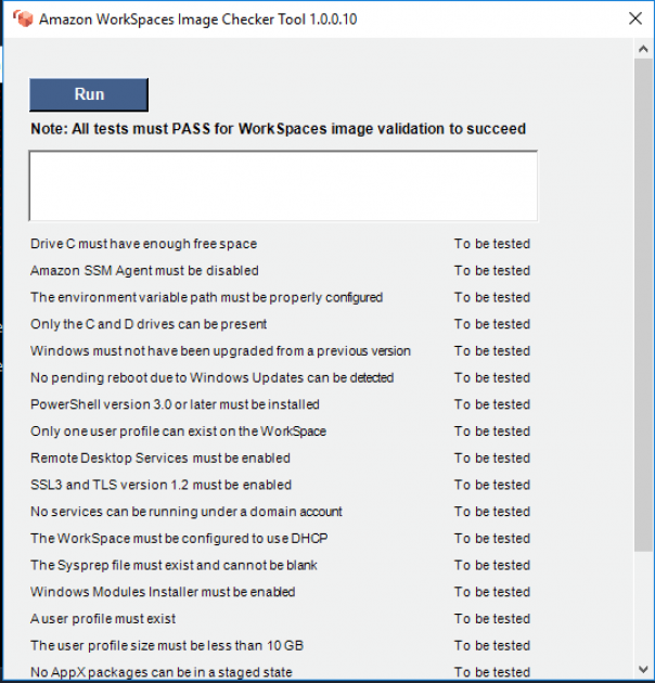 20- Clique em Close Amazon Workspaces Image Checker Tool