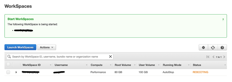 22- O WorkSpace seguirá o status de Rebooting: