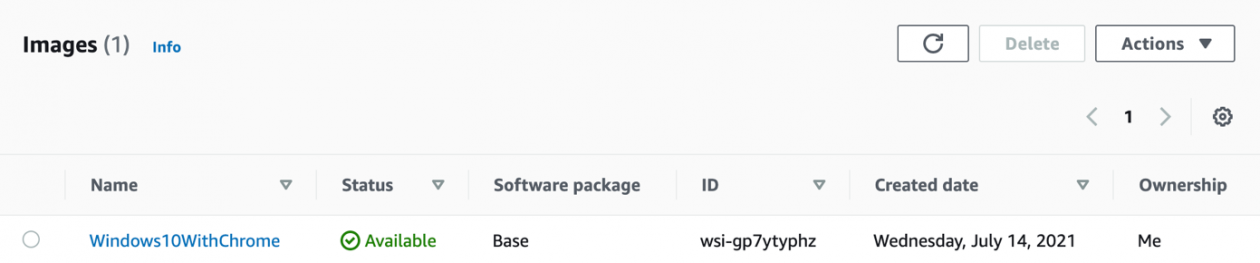 25- Selecione o WorkSpace e, em seguida, clique em Actions e Create Image