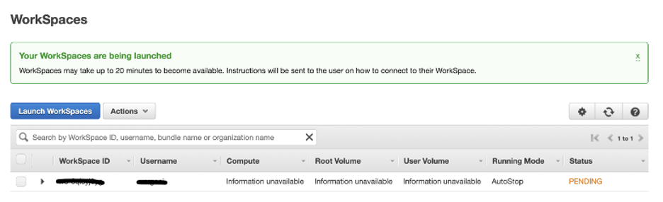 53- Acompanhe o status de provisionamento através da console do WorkSpaces: