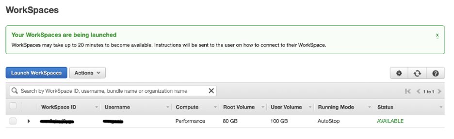 11- Pode levar cerca de 20 minutos para que o WorkSpace fique disponível (status Available):
