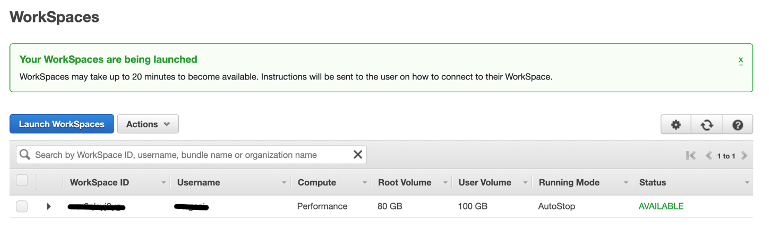 Para disponibilizar o workspace é mandatório ter configurado na conta AWS um serviço de diretório no AWS Directory Services (via AWS Managed Microsoft AD, AD Connector ou Simple AD), pois o workspace é obrigatoriamente associado ao domínio definido no AWS Directory Services.