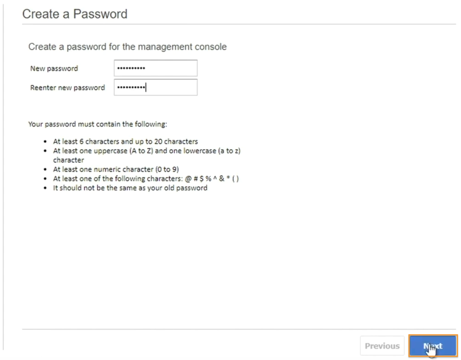 - Crie uma senha para o conector. A senha deve atender aos critérios mínimos estabelecidos. Clique em Next.