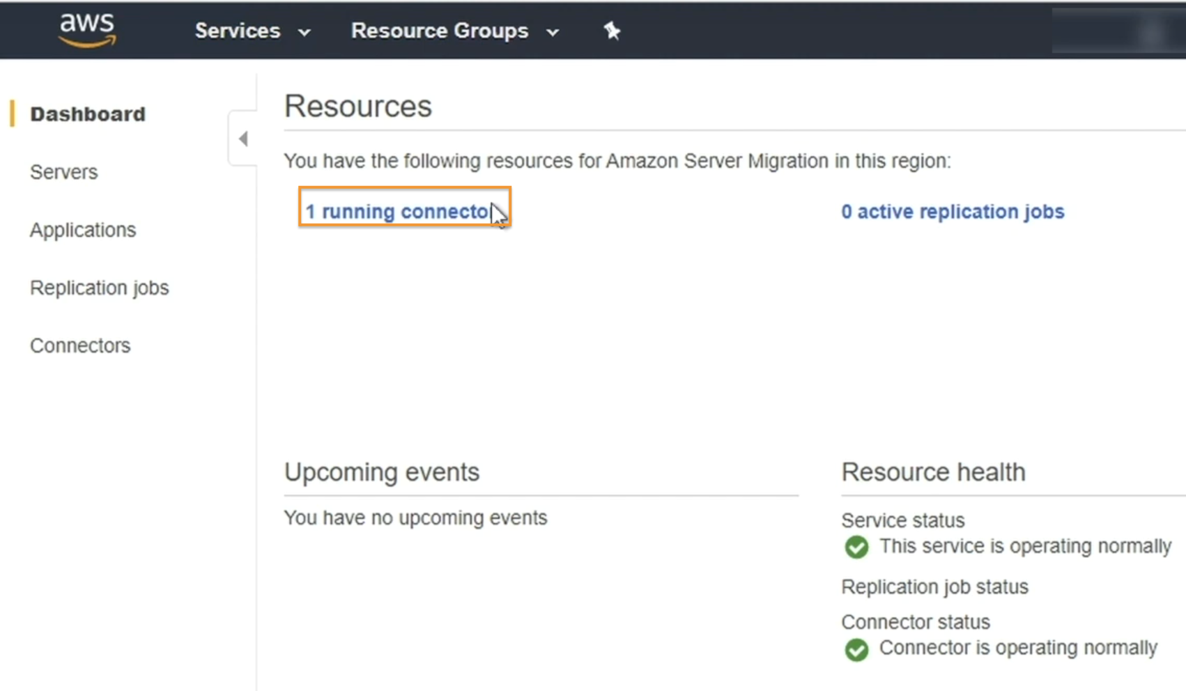 - Configure uma tarefa de replicação do SMS Connector a partir do Console de Gerenciamento da AWS.