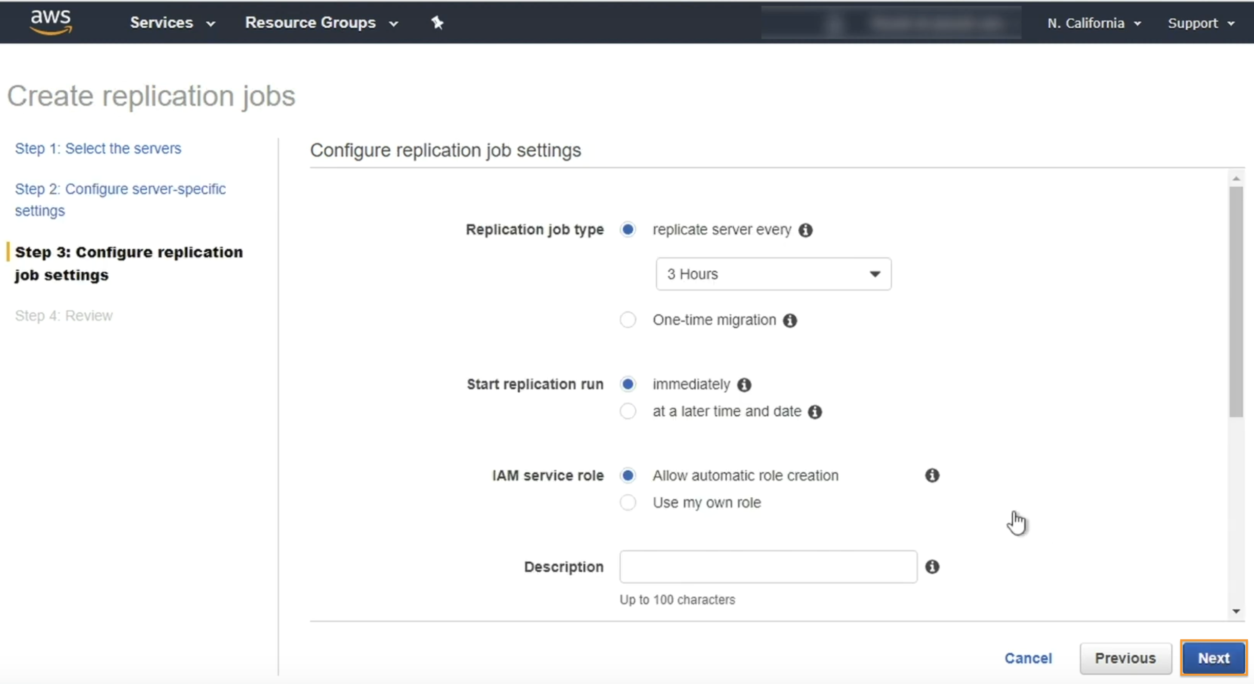 3. Configurando uma tarefa de replicação do conector SMS, à partir da Console de Gerenciamento da AWS
