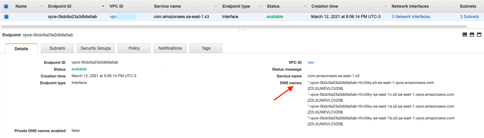 VPC Endpoint nos fornece nomes de DNS que devemos utilizar para comunicar com o Amazon S3.