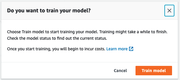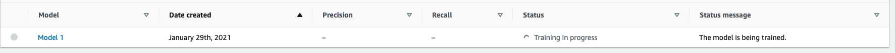 Clicando em “Train model” e confirmando nas duas telas seguintes, nosso modelo vai iniciar seu treinamento. Isso pode demorar algum tempo.