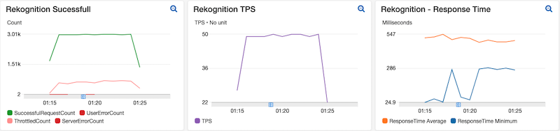 Imagem 4: CloudWatch: Rekognition @ 50TPS