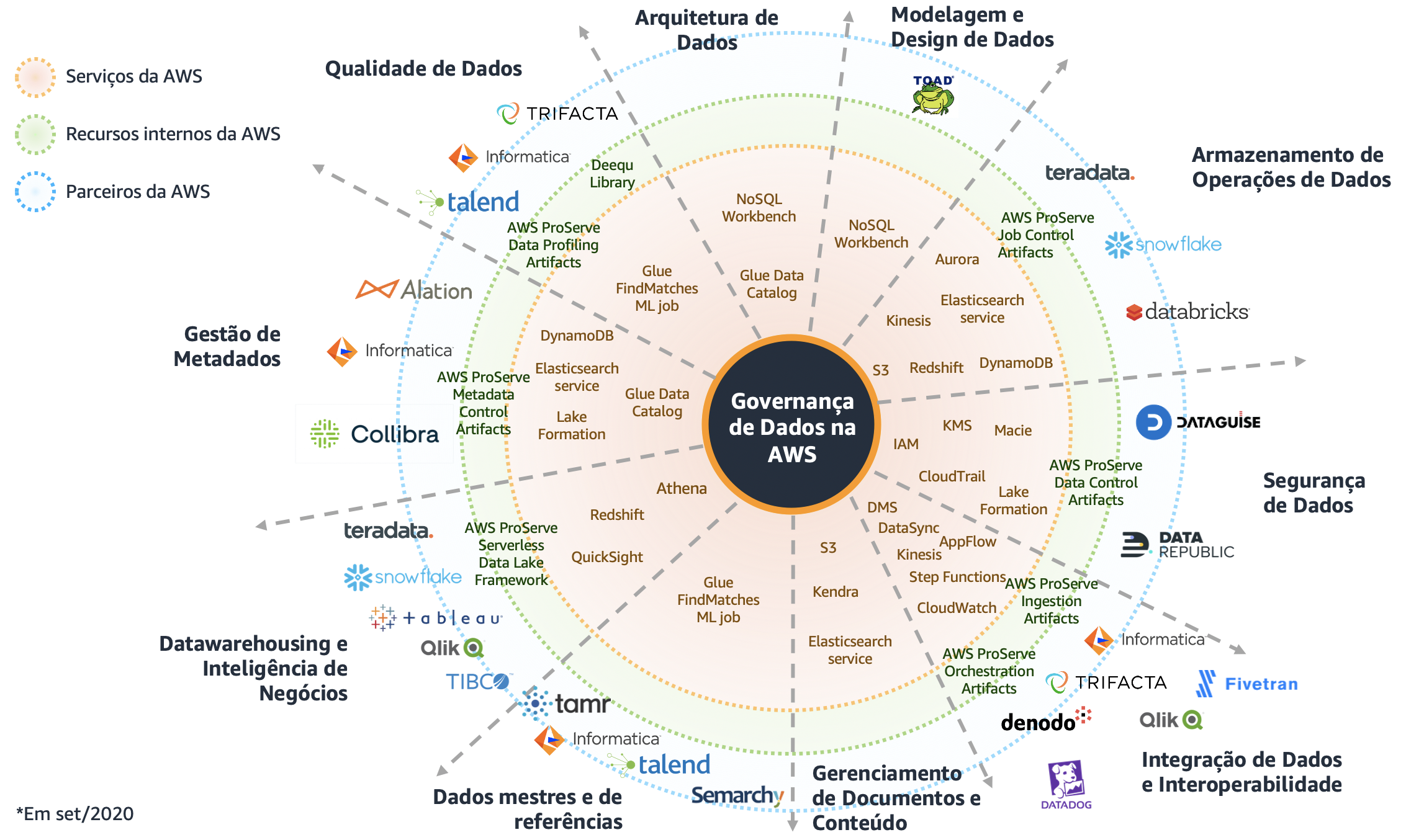 O objetivo deste artigo é explicar como os serviços da Amazon Web Services permitem implementar na prática os requisitos do modelo de governança de dados DAMA. Para estruturar a explicação, vamos seguir as dimensões definidas pelo modelo: