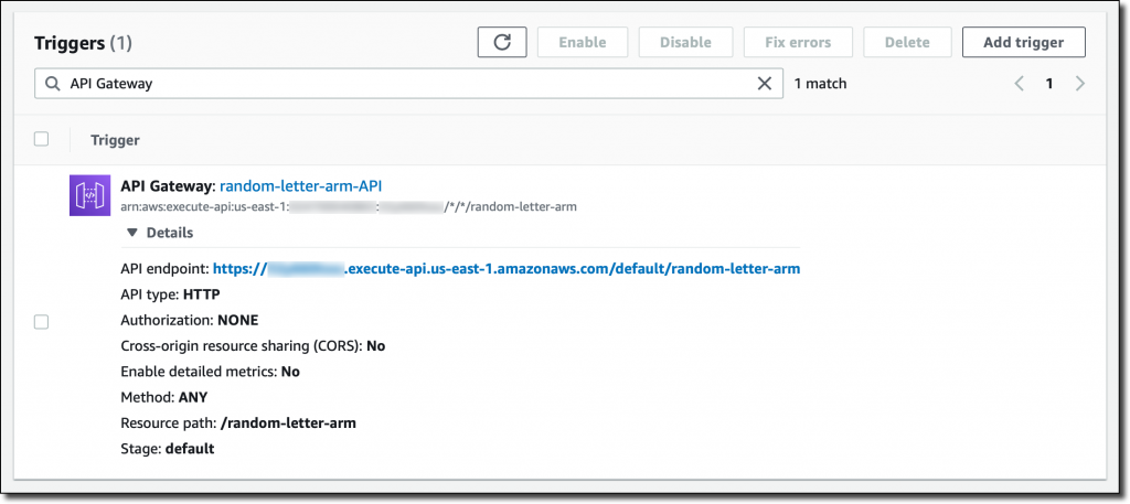$ docker run -p 9000:8080 random-letter-arm:latest