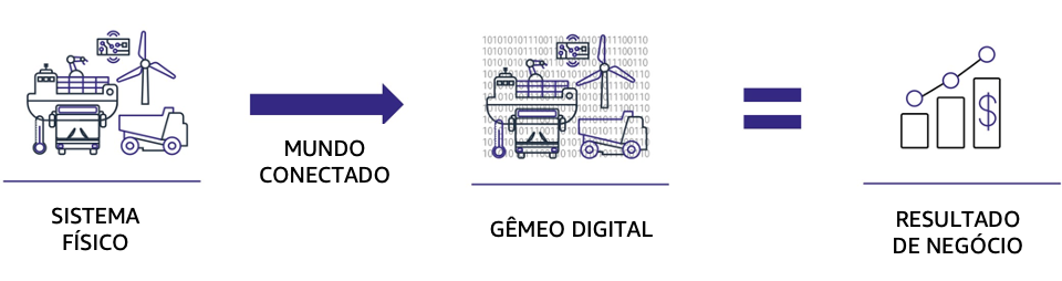 Um Gêmeo Digital é uma representação digital viva de um sistema físico individual que é dinamicamente atualizado com dados para imitar a verdadeira estrutura, estado e comportamento do sistema físico, a fim de impulsionar os resultados comerciais.
