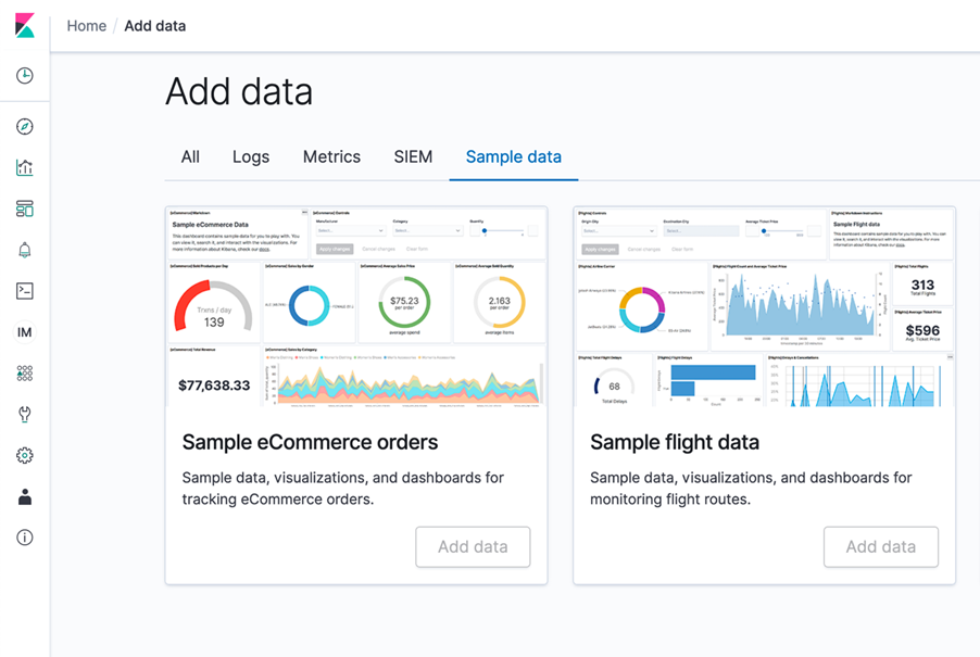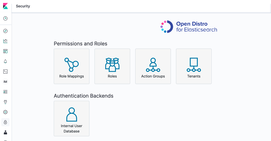 O usuário mestre do controle de acesso granular terá acesso à seção de “Segurança” na interface do Kibana (note o cadeado no menu esquerdo abaixo):