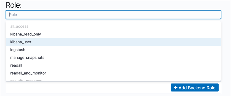 Para criar um usuário comum do Kibana, sem acesso à seção de configurações de Segurança, basta associar o role kibana_user do Kibana a um role da AWS e usar a associação específica de role do Cognito Identity Pool que será explicado abaixo.