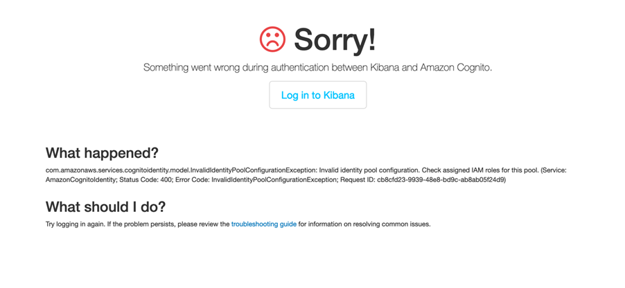 Sugerimos seguir os passos para validar as configurações quando tiver problemas na autenticação do Kibana através do Cognito: