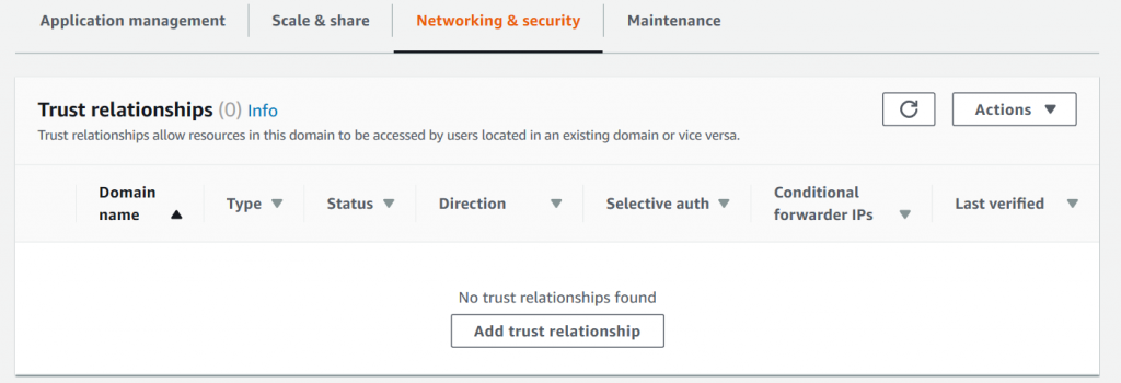 b. Dentro deste diretório, selecionamos “Networking & security” e posteriormente a opção “Add trust relationship”.