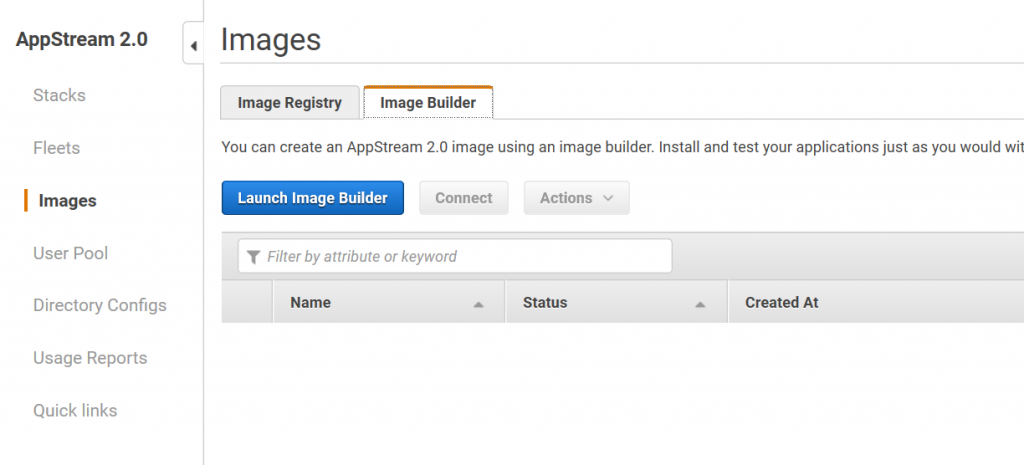 4) Criaremos agora uma imagem utilizando a opção de domain-joined. Para isso, selecionamos a opção “Images > Image Builder > Launch Image Builder”.