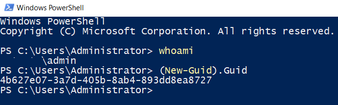 a. Em uma EC2 com acesso ao Managed AD, iremos logar com o usuário domain\admin e gerar um GUID executando o comando “(New-Guid).Guid”.