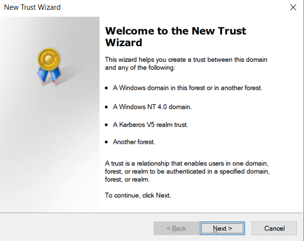 c. Selecionamos a opção “New Trust” e então no wizard, “Next”.