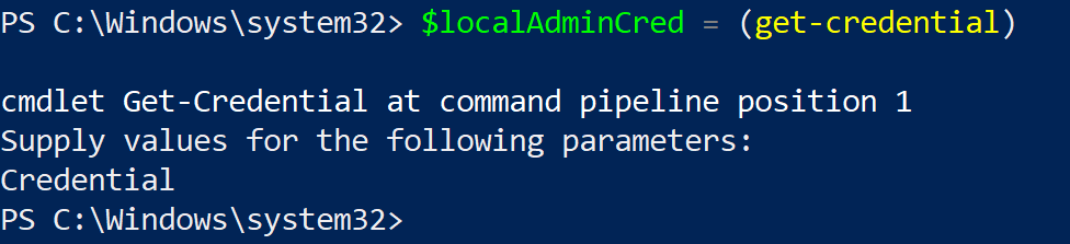 $localAdminCred = (get-credential)