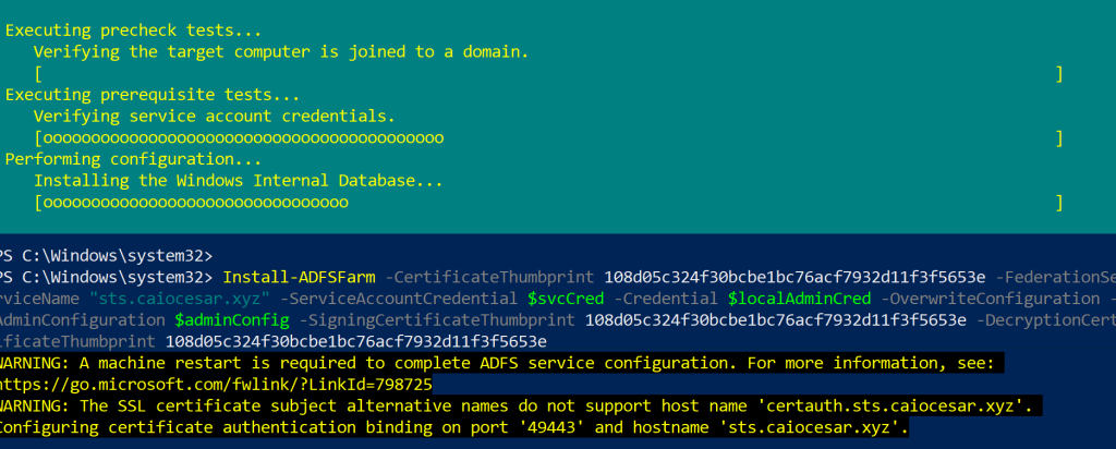 9. Após o sucesso do setup, reinicie o ADFS.