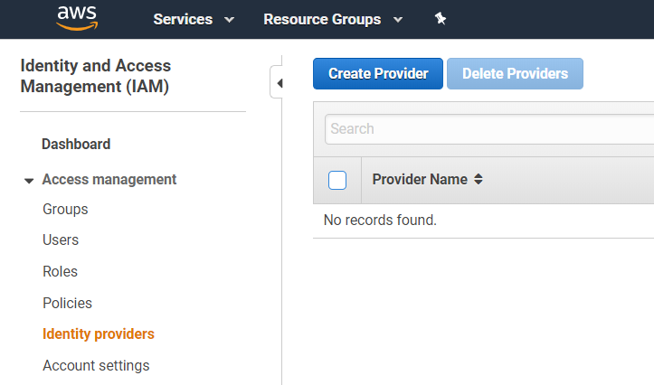 2. Agora iremos no console do IAM e criar um provedor de identidade.