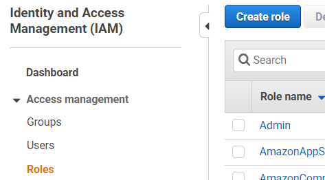 a. No console do IAM, selecionamos “Roles”, “Create Role”.