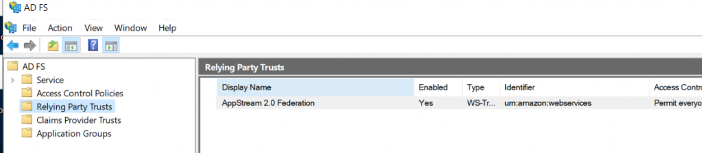 Agora que terminamos a configuração inicial do ADFS, vamos habilitar a federação de identidade com o Amazon AppStream 2.0: