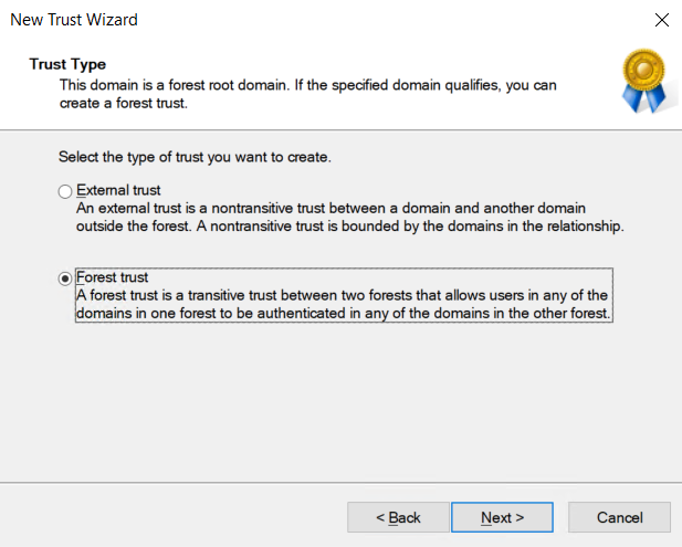 e. Selecionamos a opção “Forest Trust”: