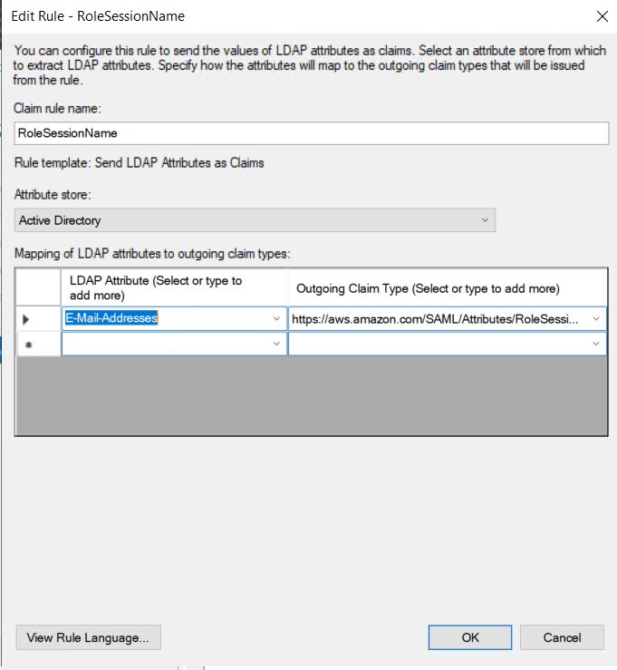Outgoing Claim Type: https://aws.amazon.com/SAML/Attributes/RoleSessionName