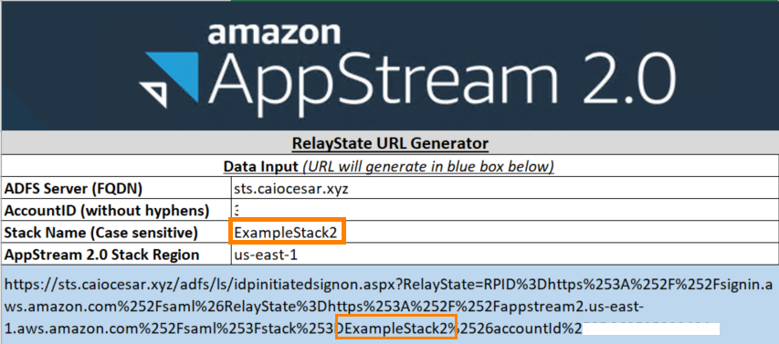 Para stacks com domain joined fleet, o valor de NameID para o usuário deve ser fornecido no formato “domínio\nome de usuário” usando o sAMAccountName ou “nome de usuário@domínio.com” usando o valor de userPrincipalName. Se você usar o formato sAMAccountName, especifique o domínio usando o nome NetBIOS ou o nome de domínio (FQDN). Para obter mais informações, consulte Usando o Active Directory com AppStream 2.0.