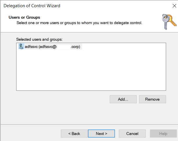 5. Iremos efetuar a configuração do ADFS. Para que este passo funcione, precisamos configurar o ADFS para utilizar os contêiners criados no passo 1).