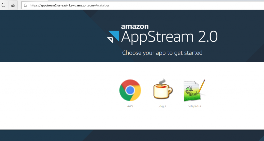 4. Após a autenticação, o usuário deve ser redirecionado para a console do AppStreams 2.0.