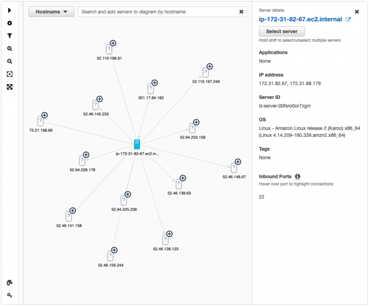 Usando o Discovery Agent você terá uma visualização das conexões de rede entre cada máquina. Essa funcionalidade facilita a identificação de silos dentro do seu ambiente e o mapeamento da interdependência entre sistemas.