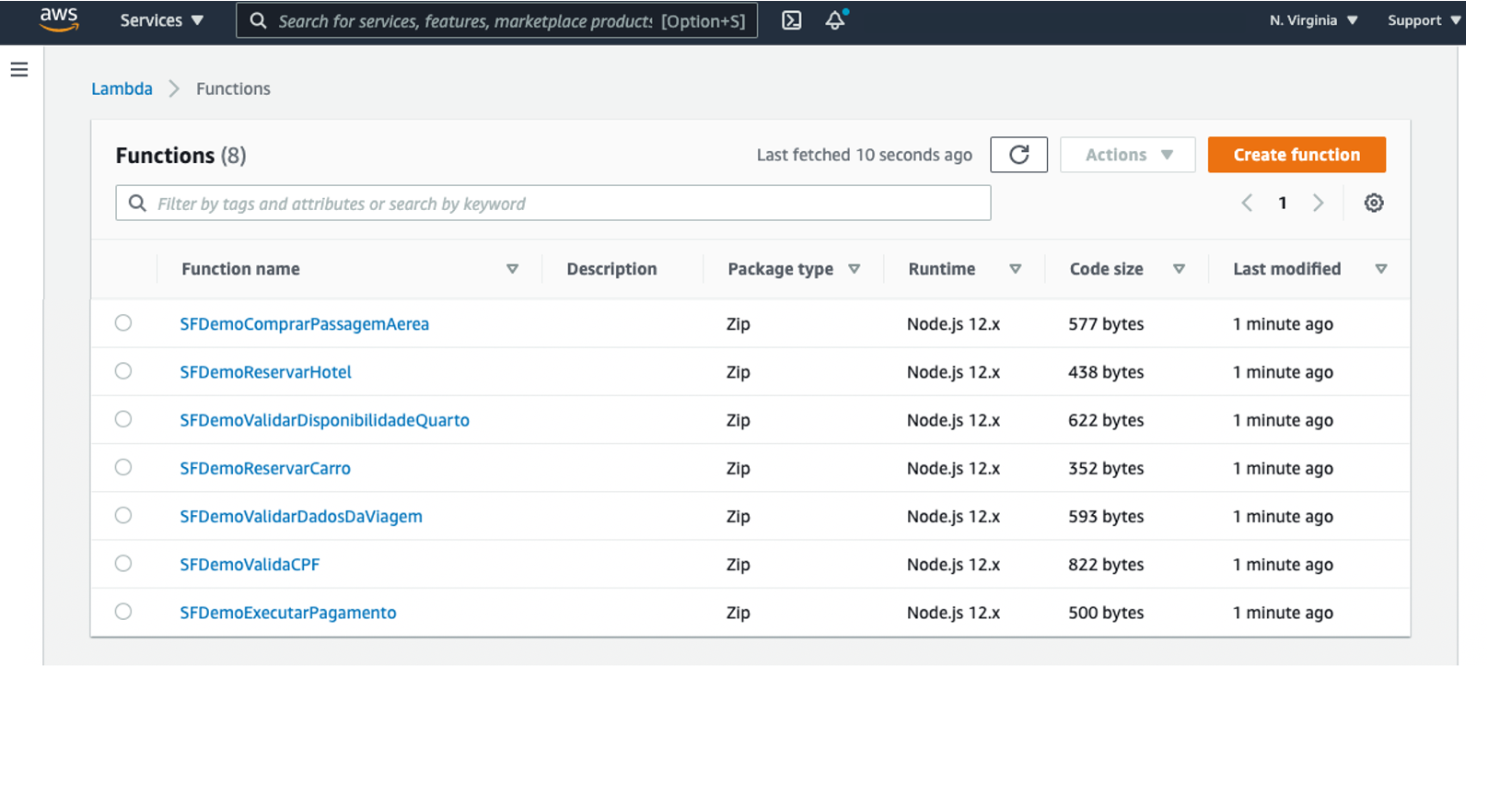 aws lambda delete-function --function-name SFDemoValidaCPF aws lambda delete-function --function-name SFDemoExecutarPagamento aws lambda delete-function --function-name SFDemoValidarDisponibilidadeQuarto aws lambda delete-function --function-name SFDemoReservarHotel aws lambda delete-function --function-name SFDemoComprarPassagemAerea aws lambda delete-function --function-name SFDemoReservarCarro aws lambda delete-function --function-name SFDemoValidarDadosDaViagem